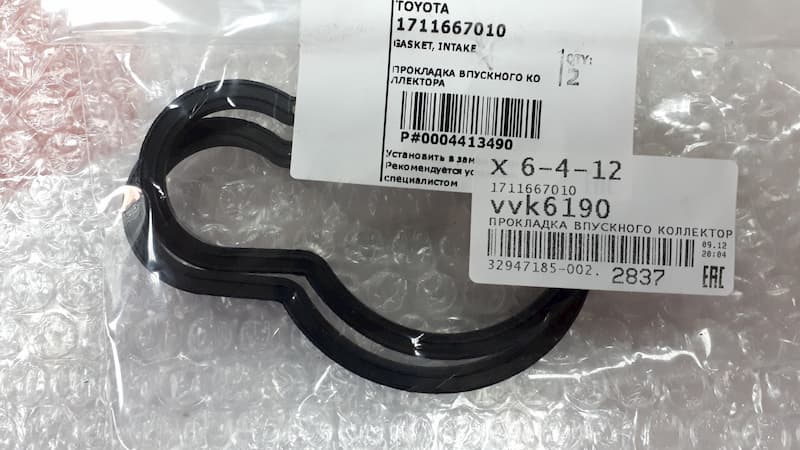 Прокладка под всасыв трубу KZN185 | TOYOTA | 17116-67010 | 12 | 500 |