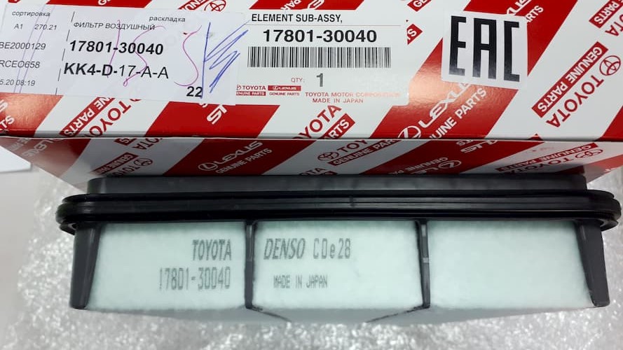Фильтр воздушный 17801-51010 TOYOTA 17801-30040 7 3900