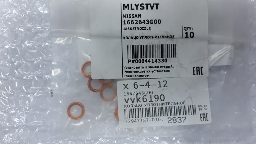 Оригинальная прокладка форсунки медная Nissan N2F23 N4F23 N6F в наличии со склада во Владивостоке